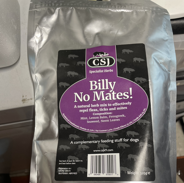 Billy no mates is the number 1 best selling natural herb treatment against fleas, ticks and mites. Easy to use daily in dogs food.